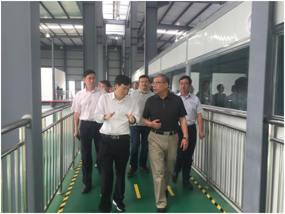 ▲考察组一行莅临公司金堂生产基地参观指导,左光磊副县长陪同(左二)