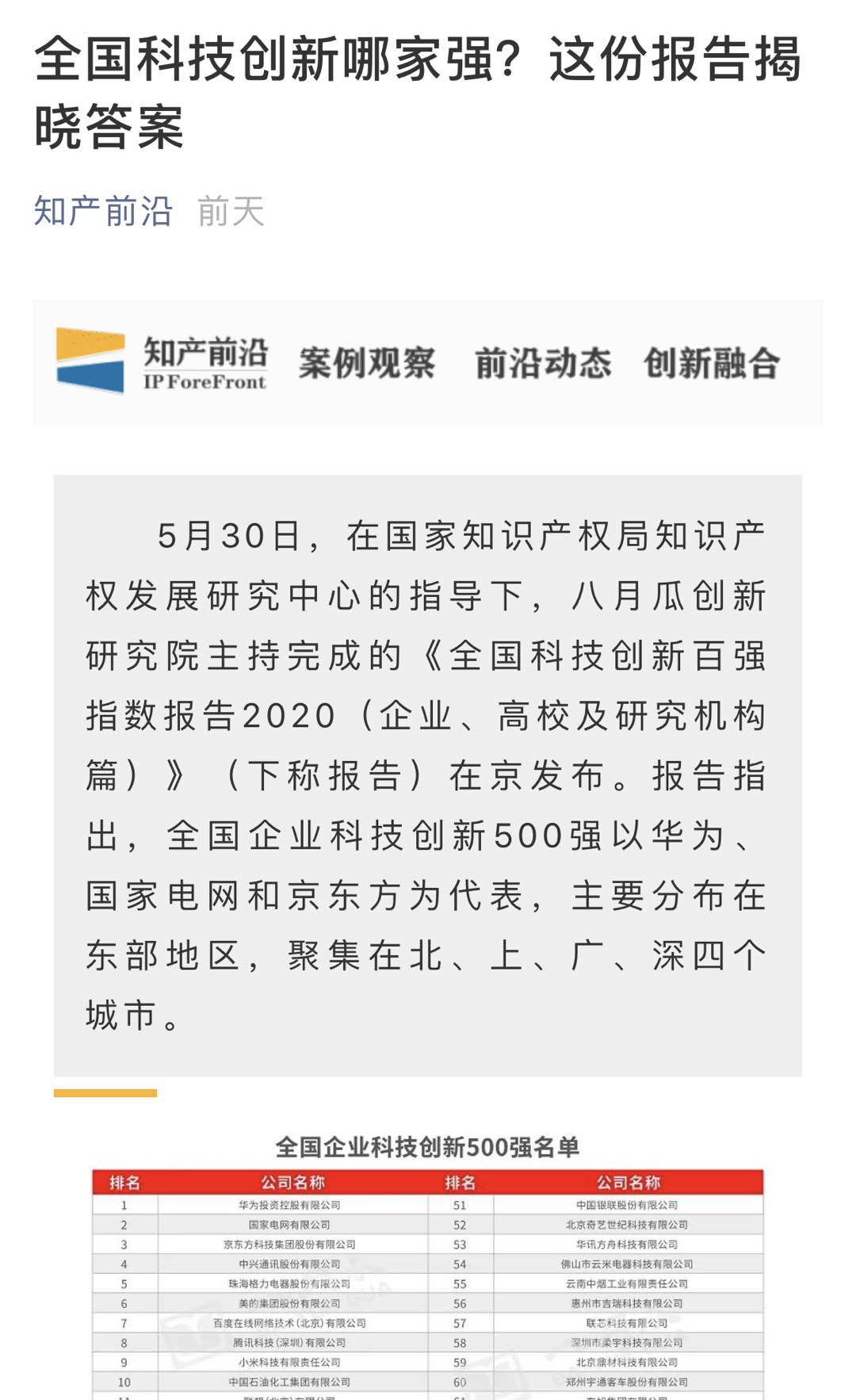报告原文链接:《全国科技创新哪家强?这份报告揭晓答案》
