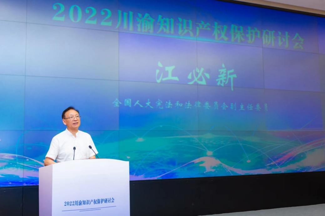 全国人大宪法与法律委员会副主任委员江必新发表致辞。他表示要推动更高水平的知识产权保护与法律的结合,要结合国家发布的《知识产权强国建设纲要》与四川省提出的《四川省“十四五”知识产权保护和运用规划》,做到精准化、体系化和效率化和一体化,着重解决知识产权纠纷举证难、周期长、赔偿低、成本高等问题。